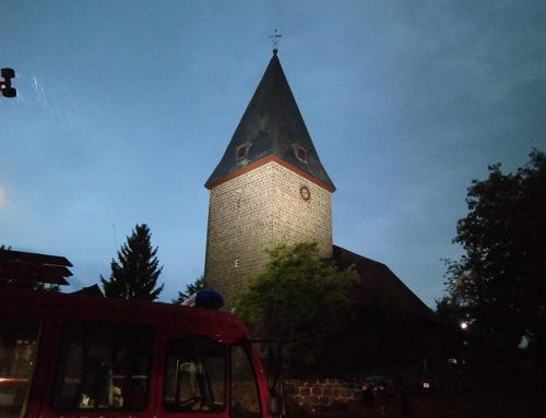 Hier wurde die Kirche durch die Lichtanlage der FFW angeleuchtet.